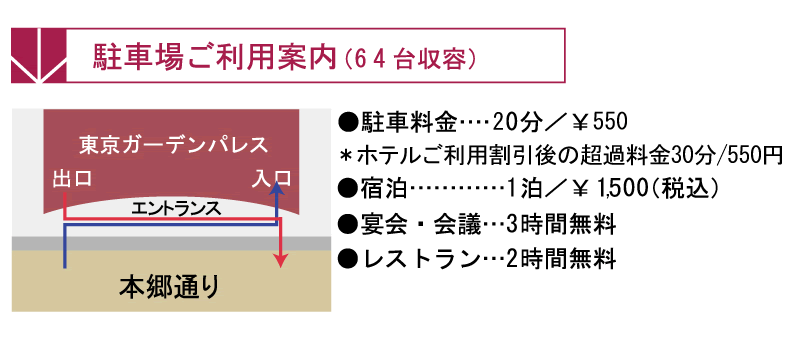 ・駐車場のご予約は承っておりません。
